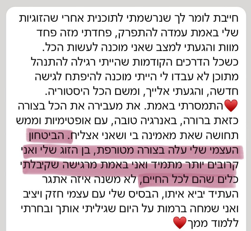 "לקבל את הביטחון שאת כ"כ כמהה לו בזוגיות שלך,